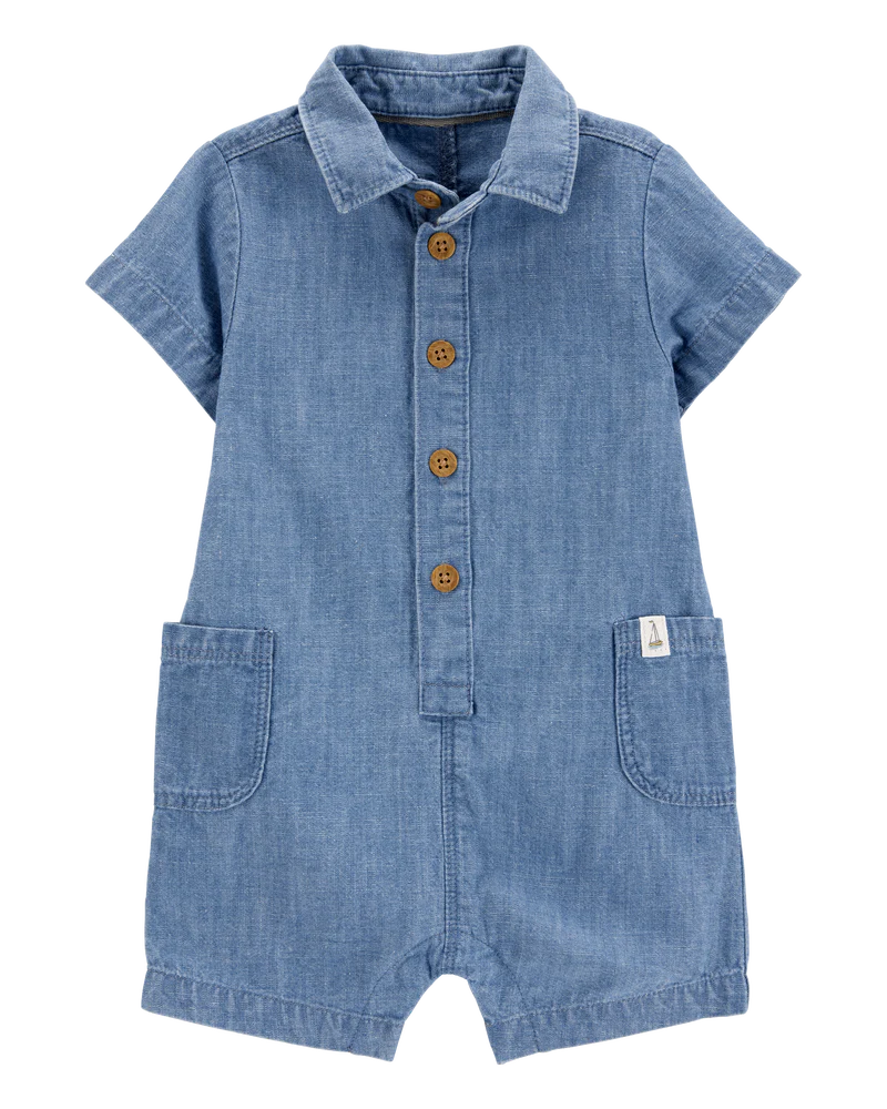 Carter's Baby Solid Cotton Blend Romper - Blue