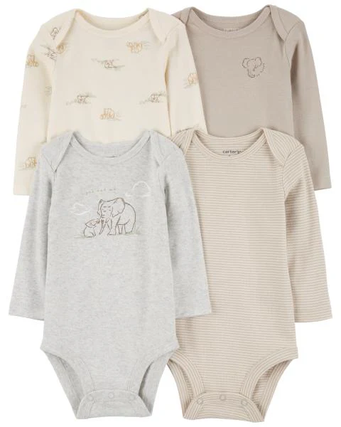 Carter's Baby 4-Pack Elephant Long-Sleeve Bodysuits