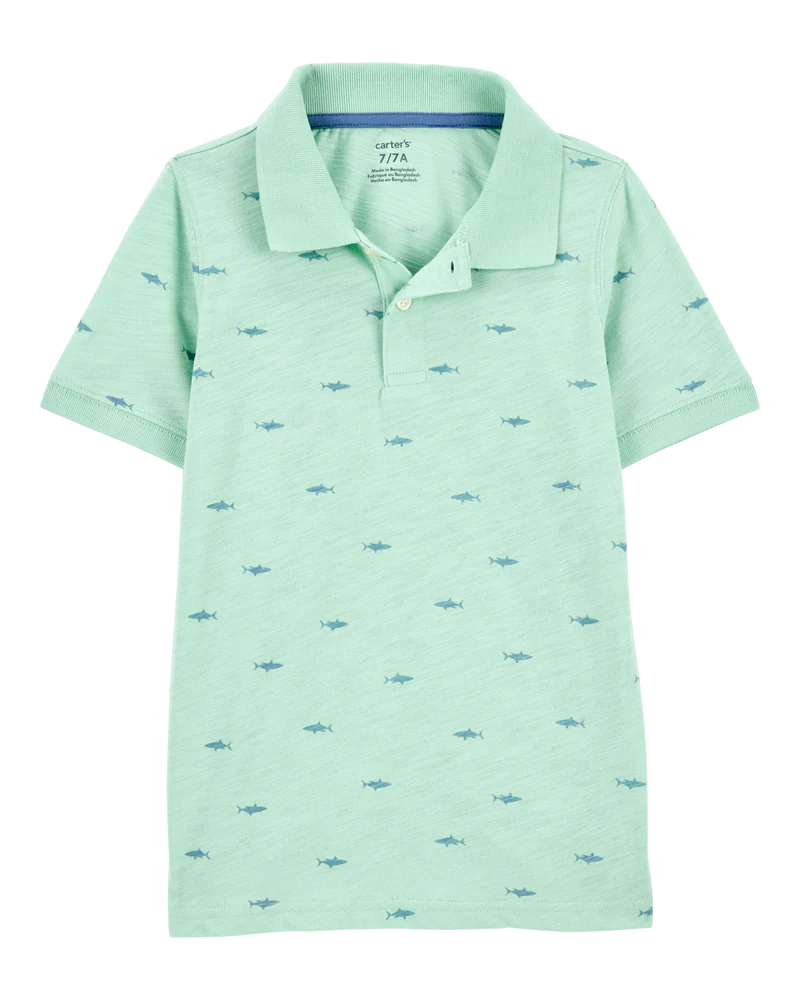 Carter's Kid Shark Polo Shirt - Green