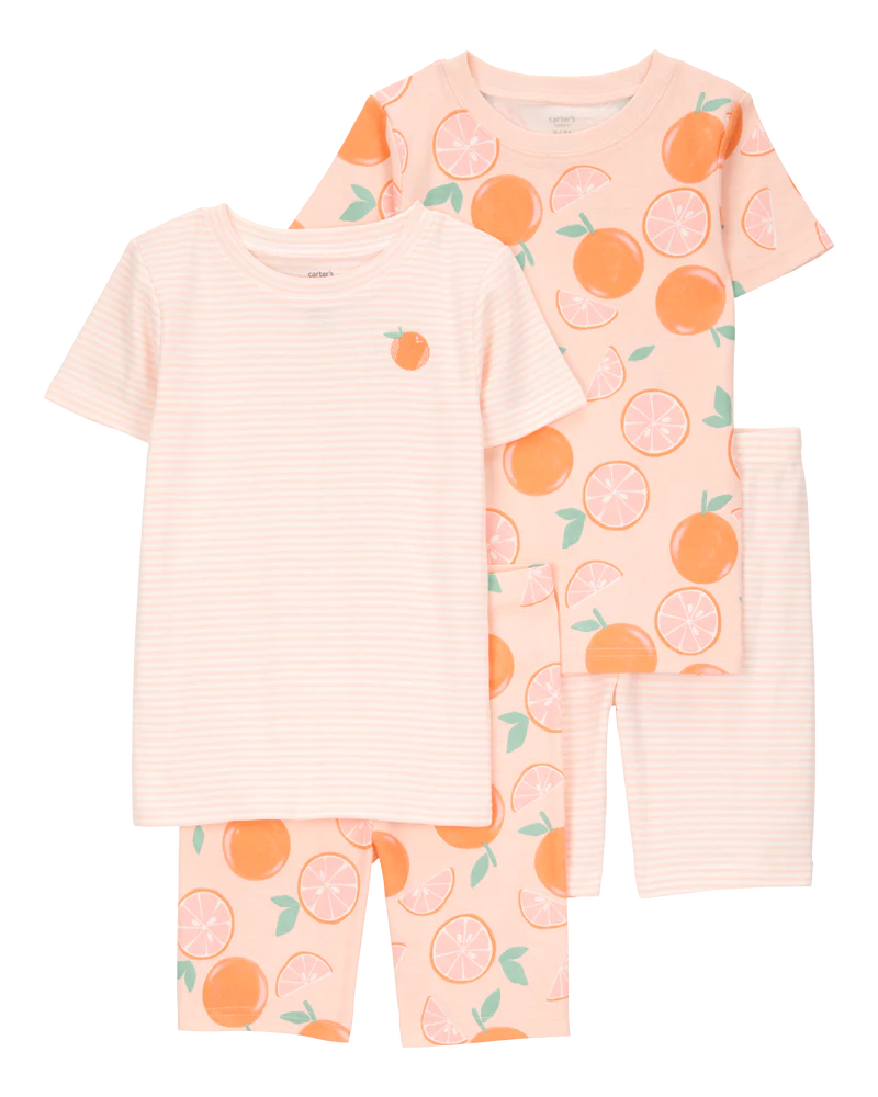 Carter's Kid Orange Striped Snug Fit Cotton 4-Piece Pyjamas
