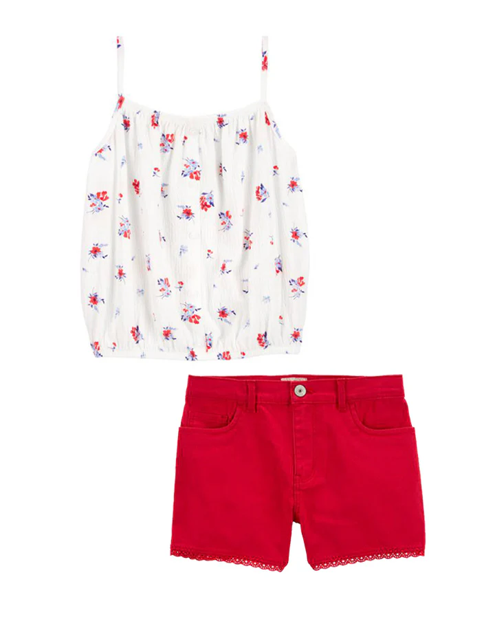 Oshkosh Kid Floral Tank with Red Short