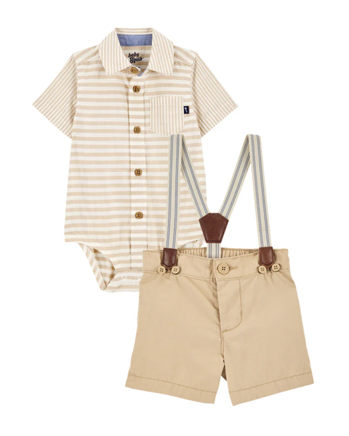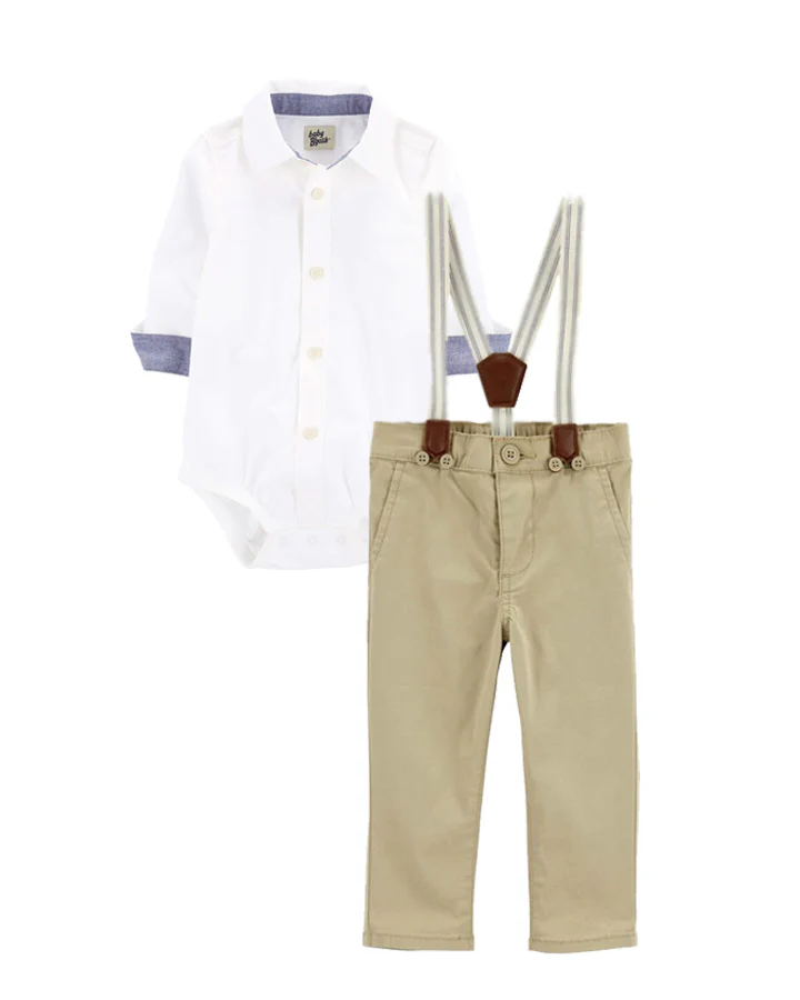 Oshkosh Button-Front Bodysuit with Twill Suspender Pants