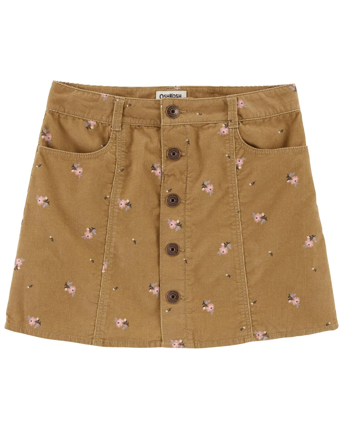 Oshkosh Kid Floral Print Button-Front Corduroy Skirt