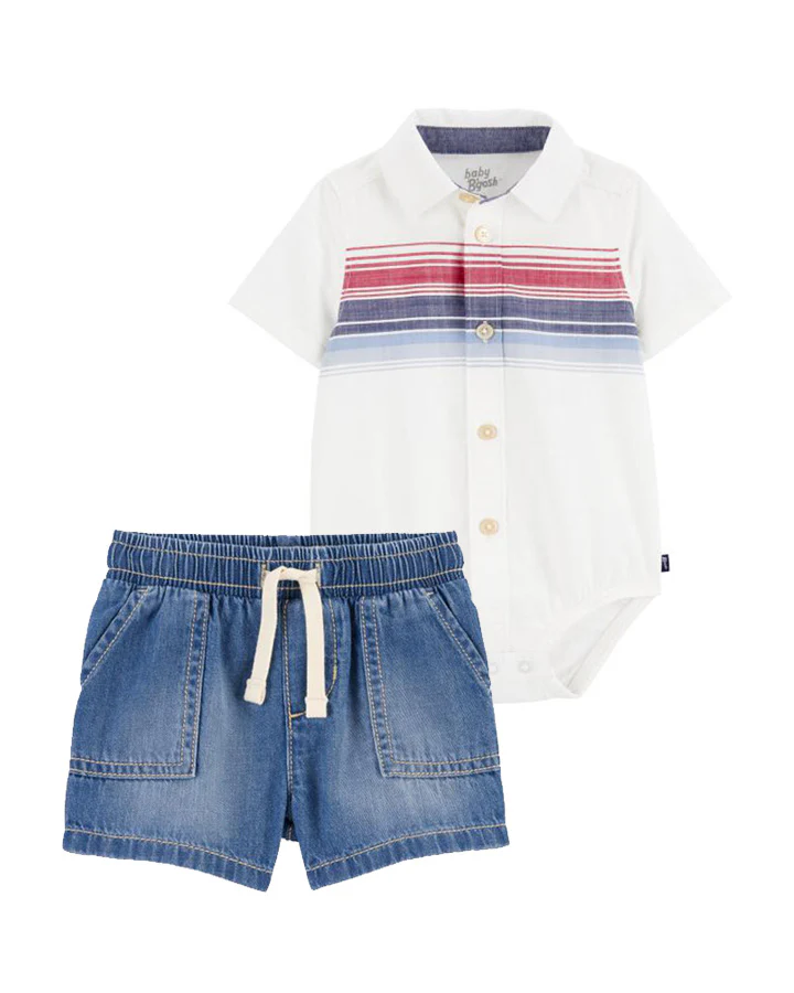 Oshkosh Baby Stripe Bodysuit with Pull-On Denim Shorts