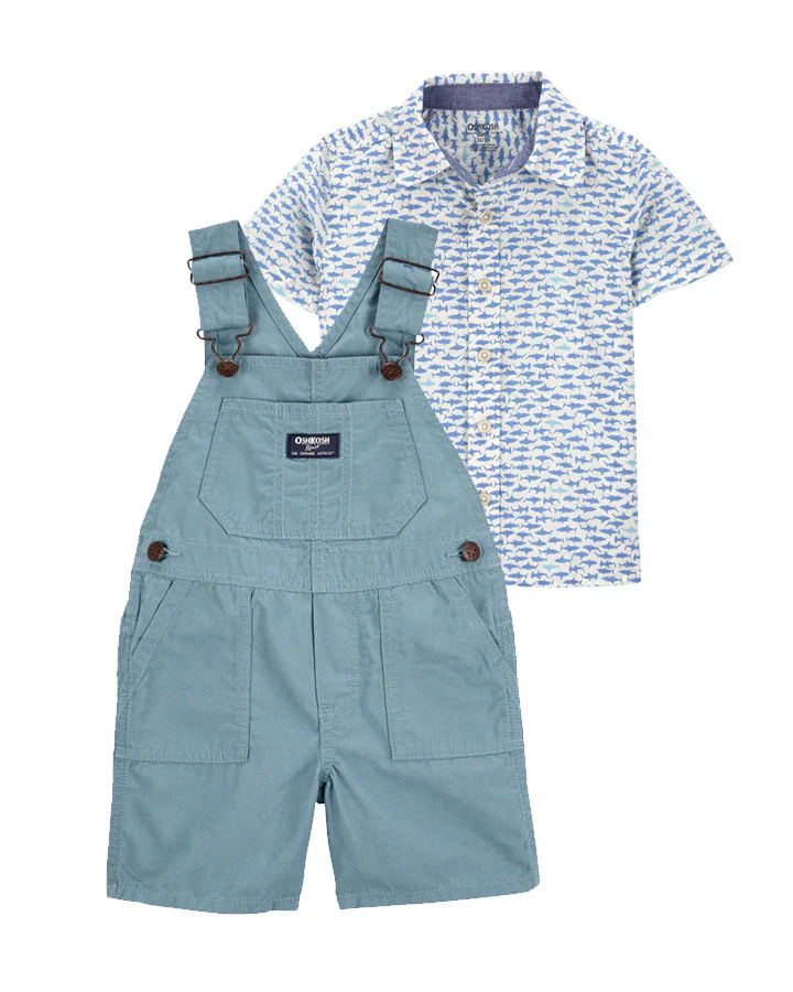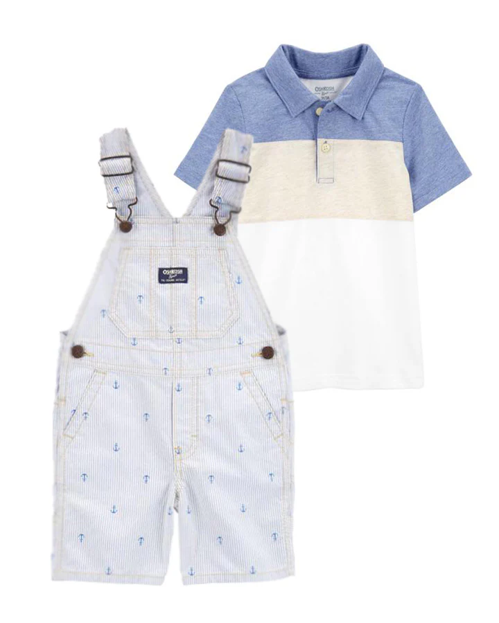 Oshkosh Anchor Print Shortalls with Colourblock Henley
