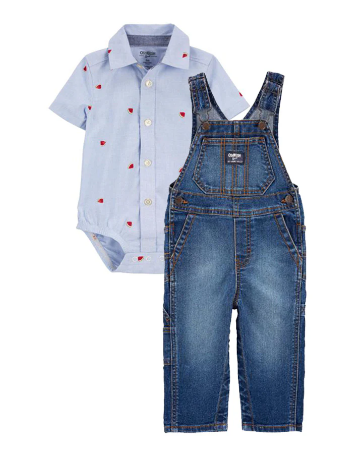 Oshkosh Baby Watermelon Bodysuit with Denim Classic Overalls