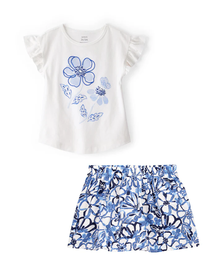 Carter's Toddler Short-Sleeve Fashion Top with Floral Skort